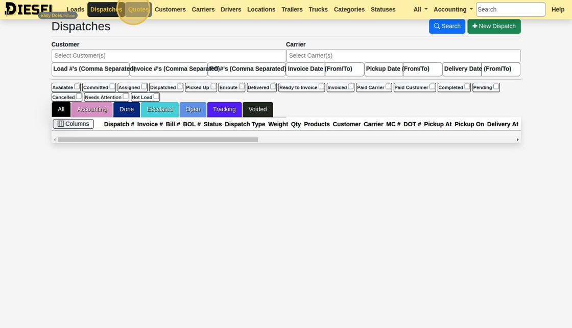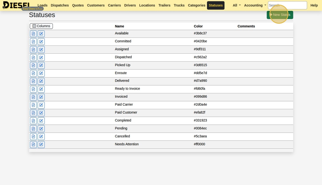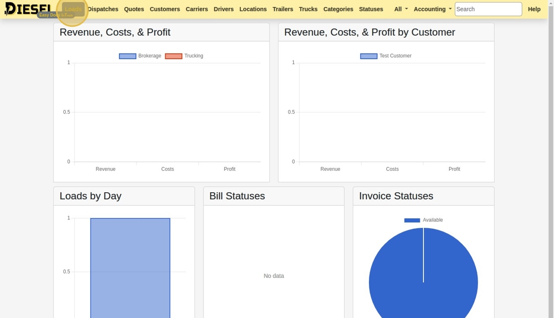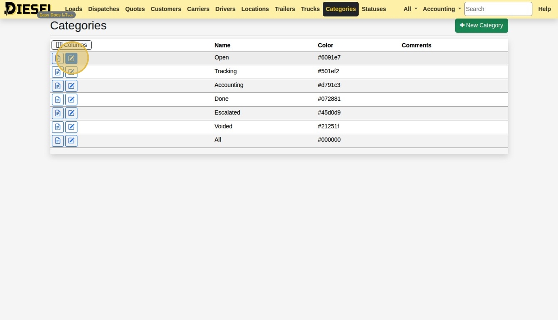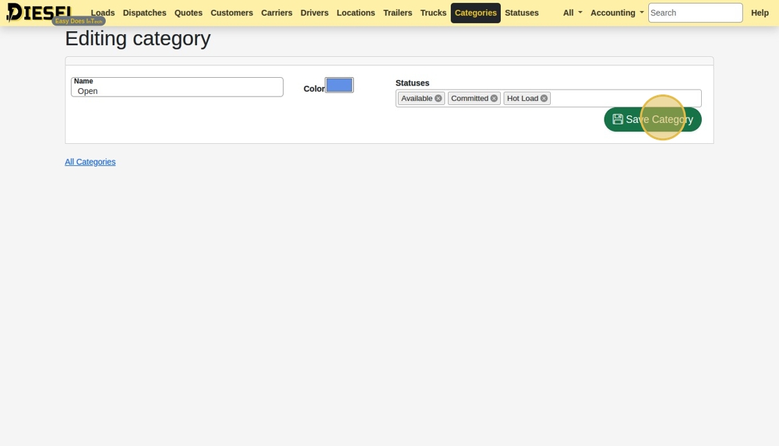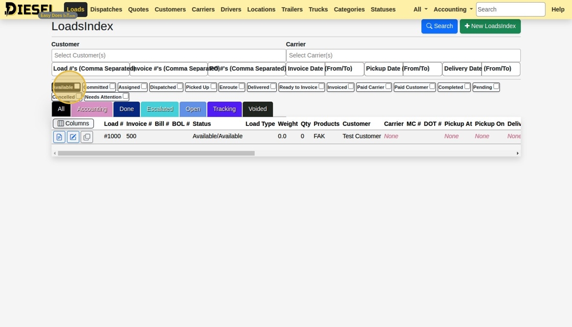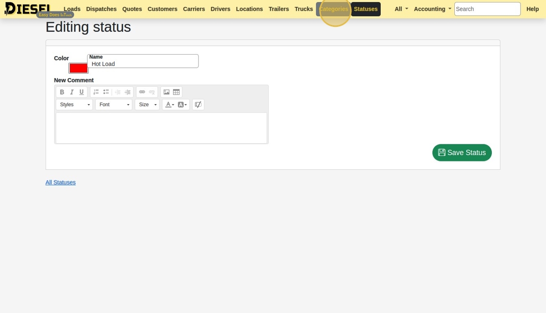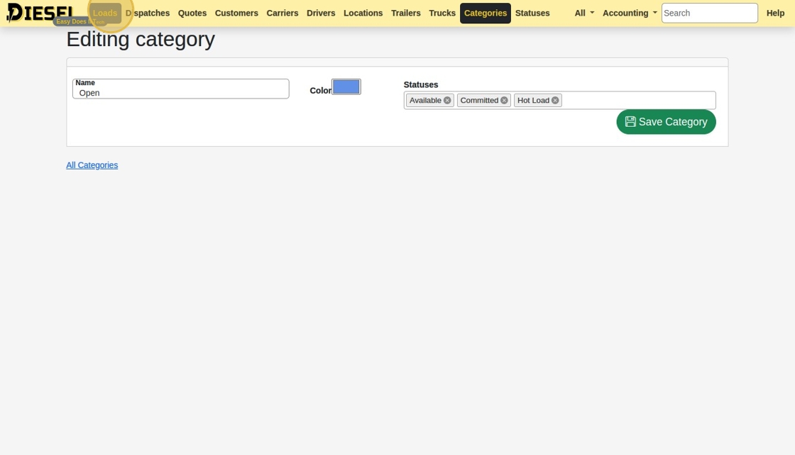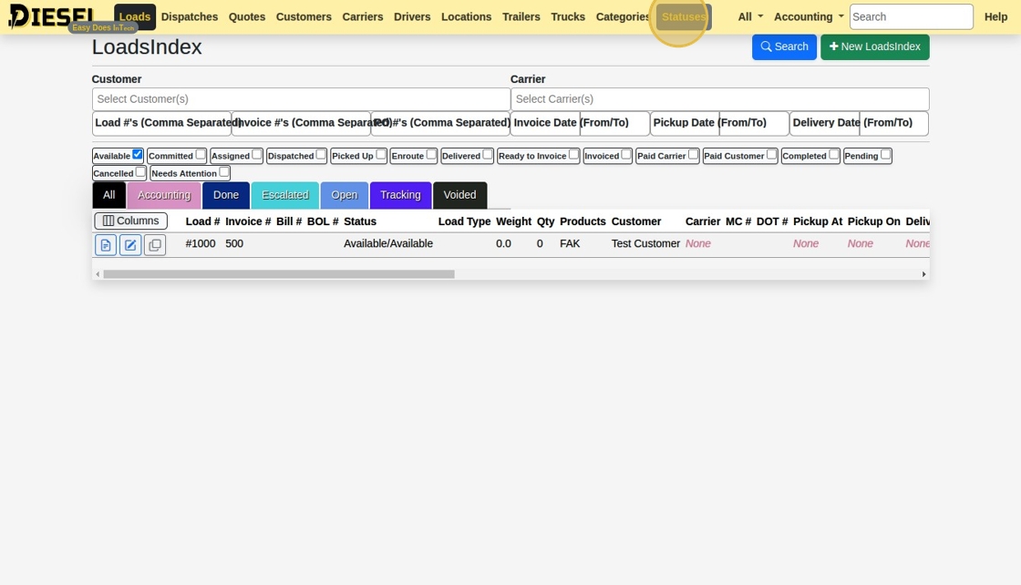 13. The "Hot Load" Status has been added to the list of Statuses. Clicking the "Open" Category Tab displays loads with only the associated Statuses.